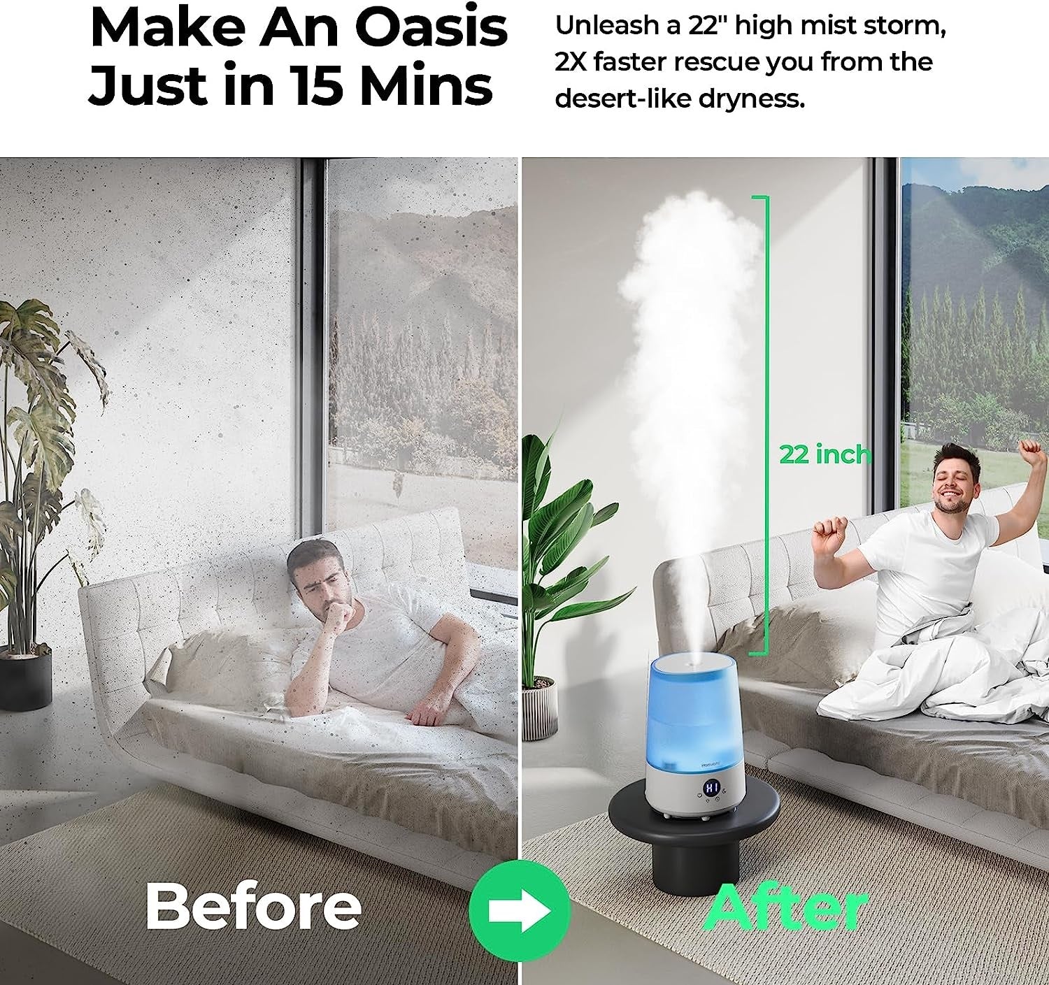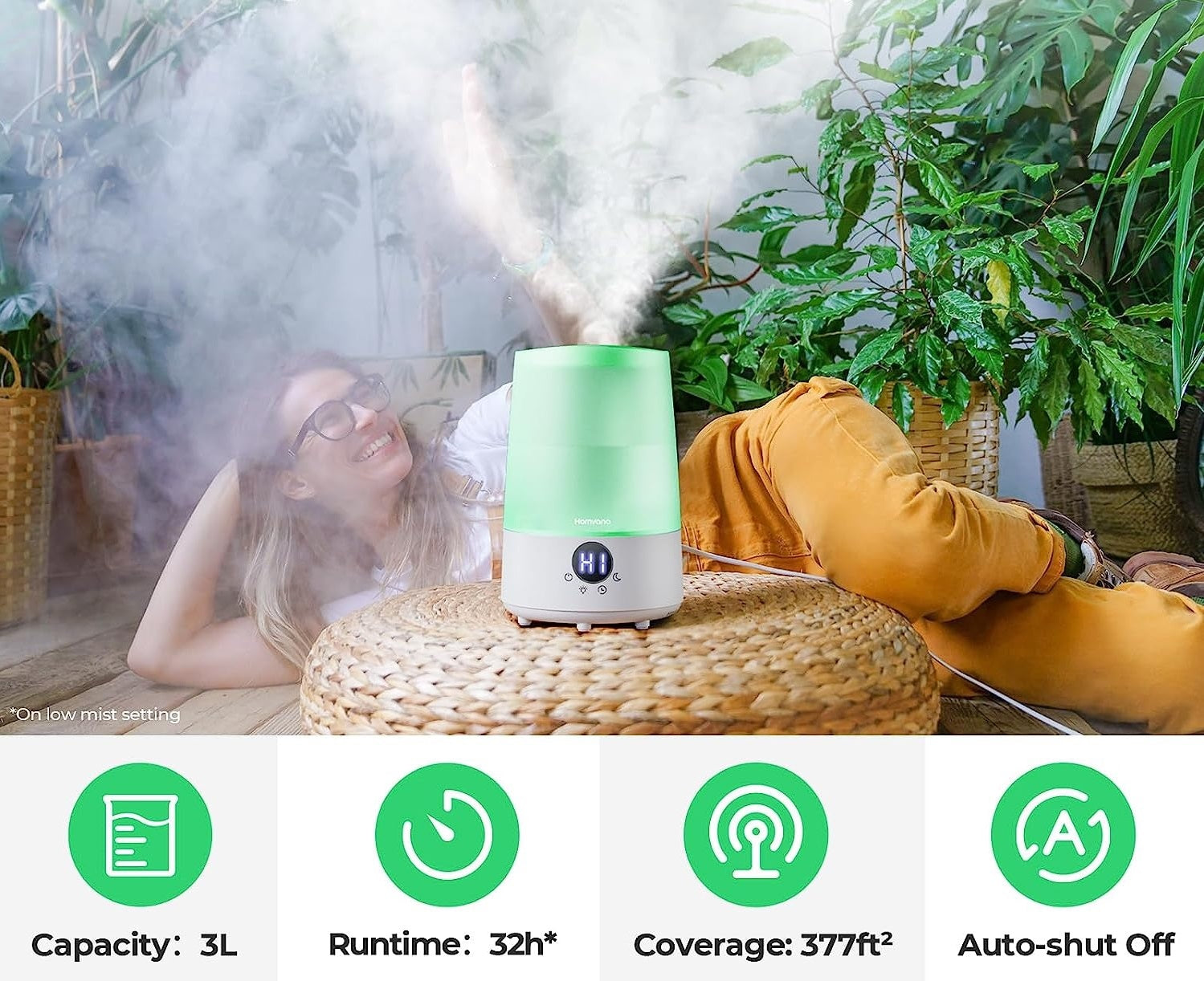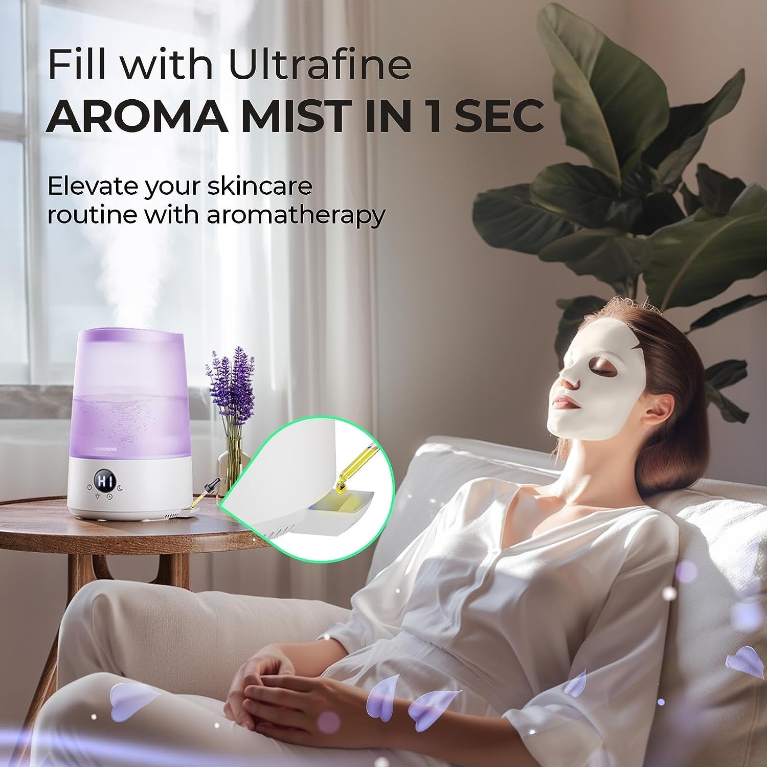 - 3-in-1Humidifier: Cool Mist Humidifier+Aromatherapy+Mood Light, purchase for once to satisfy all you expect! Let Homvana H101 be the best companion in your bedroom.