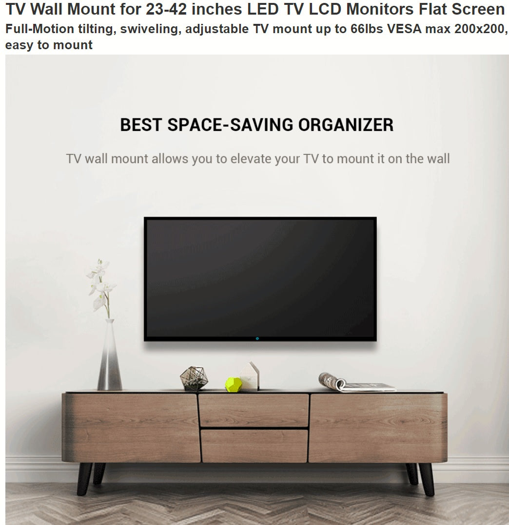 Full Motion(Tilt, Swivel & Rotate) Wall Mount for 23"-42" TVs