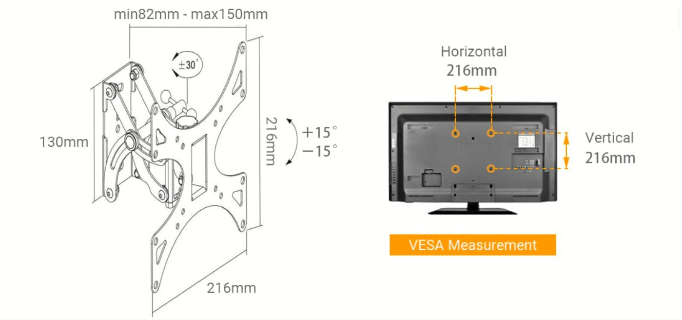- Swivel Range: +30°~-30°
